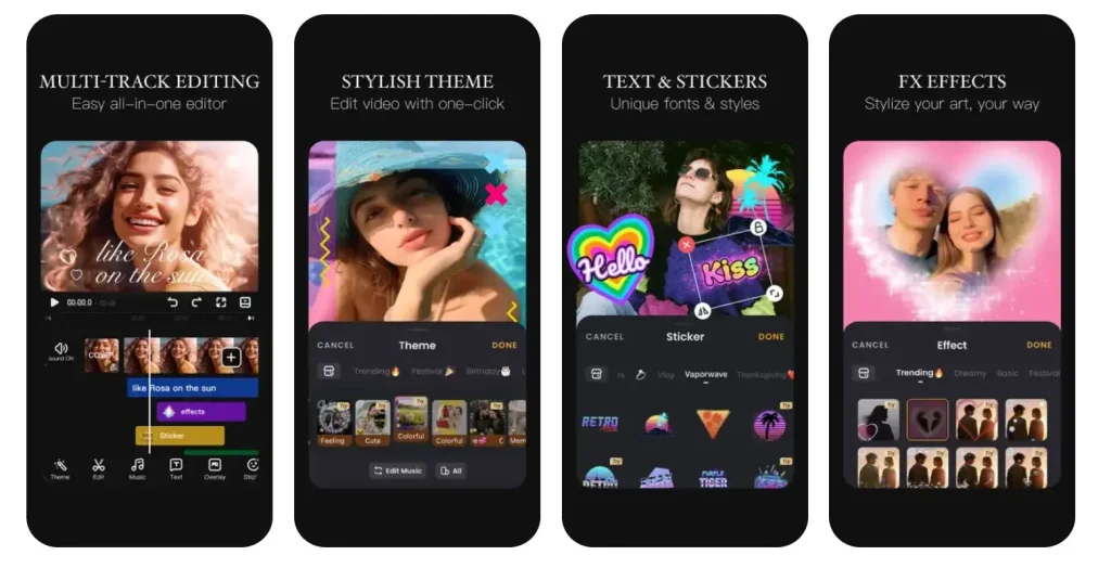 The app automatically aligns transitions and edits with music beats. It creates energetic videos with minimal manual input required.